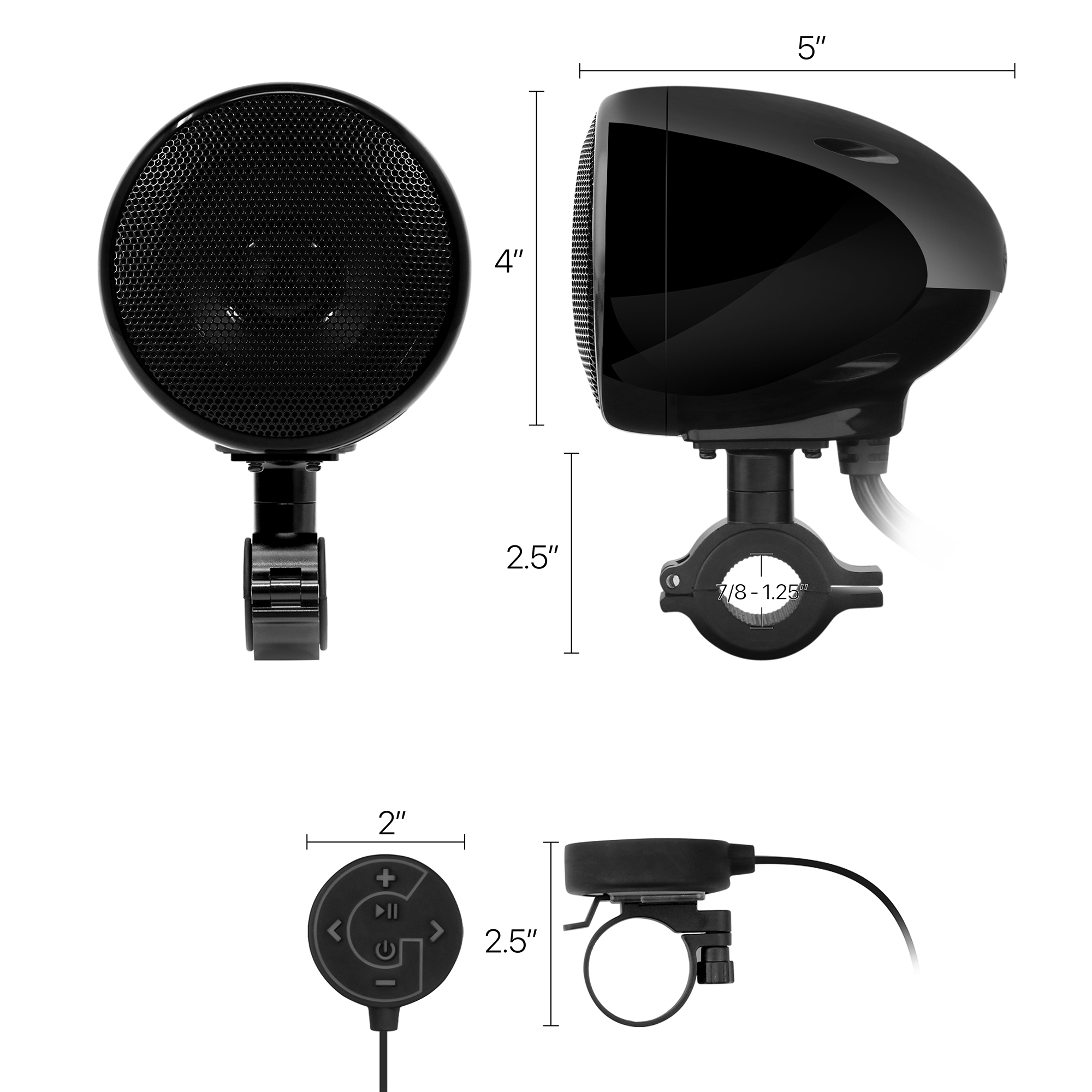The rubber inserts allow you to securely fit them to 7/8″, 1″, and 1-1/4″ handlebars. Additionally, the clamps enable horizontal speaker direction adjustment, letting you fine-tune the angle for optimal sound projection.
