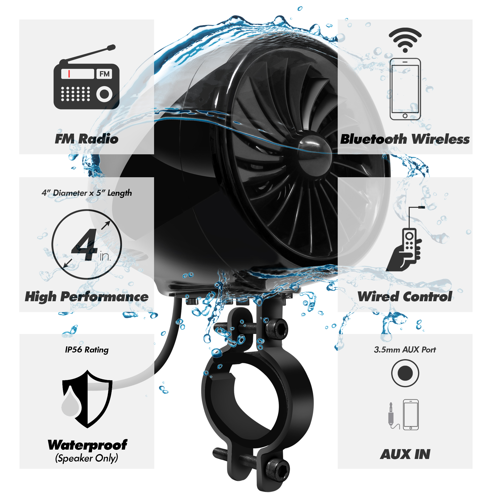 2. Only the speakers are waterproof. The amplifier is NOT waterproof. Please install the amp in a shaded area to avoid rains and direct sunlight. The power amplifier is normal to get warm while in use.