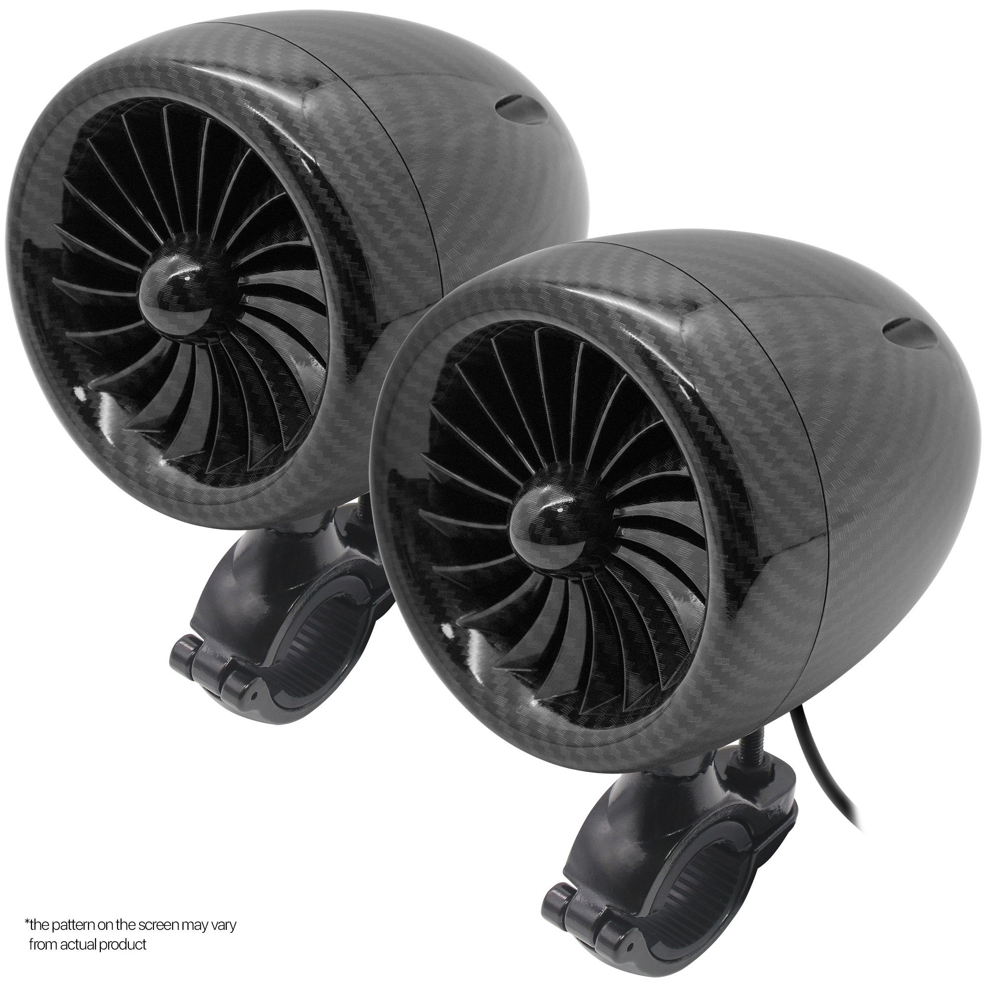 - Matte Black Stereo Unit with Blue Waterproof Gasket. Built with High-Quality Aluminum Material. Perfect for Harley Motorcycle ATV UTV RZR 4 Wheeler Polaris. 4″ Carbon Fiber Style Speaker Housing with Full Range Speaker Core. Built with High-Quality ABS Material. *Pattern on the screen may vary from the actual product.